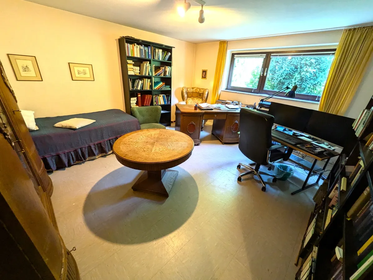 Treten Sie ein in eine geräumige, lichtdurchflutete Umgebung mit insgesamt acht Zimmern, darunter fünf gemütliche Schlafzimmer und zwei vollständig ausgestattete Badezimmer. Viele Details stammen noch aus der hochwertigen Originalausstattung der 70er- und teilweise 80er-Jahre, die sich in exzellentem Zustand präsentiert. Der ca. 60 m² große Wohn- und Essbereich besticht durch einen einladenden Kamin, markante Holz- und Steinelemente sowie große Fensterflächen, die für den unverwechselbaren Charme jener Zeit stehen. Dieses bemerkenswerte Wohnzimmer sorgt mit seiner Deckenhöhe von 2,65 m zusammen mit der außergewöhnlichen Fensterfront für ein helles und freundliches Ambiente.