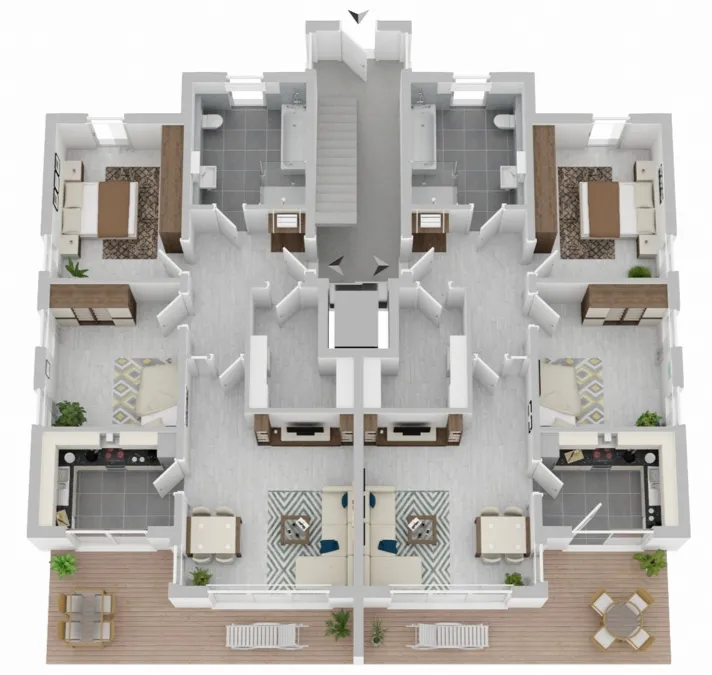 Jede der Einheiten bietet großzügigen Wohnkomfort mit zahlreichen Annehmlichkeiten.