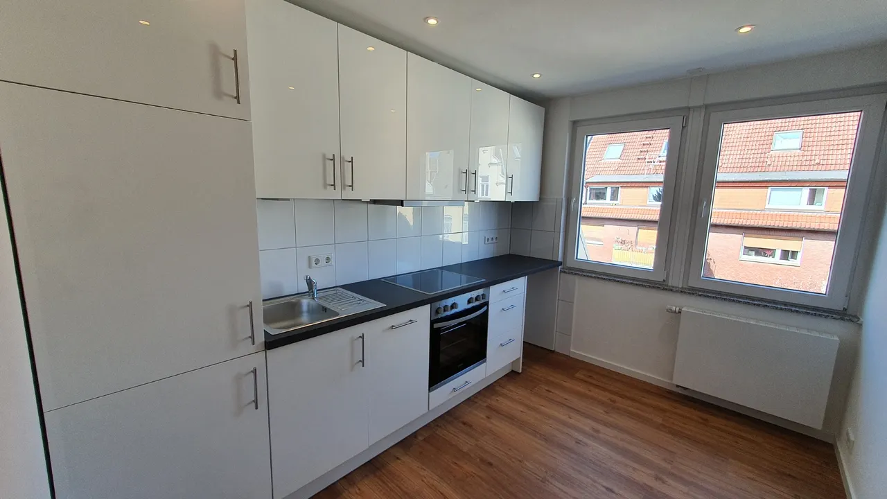 Die vorhandene Einbauküche fügt sich harmonisch in das Gesamtbild der Wohnung ein und ermöglicht einen sofortigen Einzug ohne zusätzlichen Aufwand.