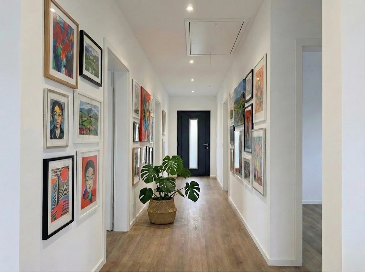 Sie betreten das Haus über einen rund 2 Meter breiten Flur. Die Deckenhöhe von ca. 2,80 m schafft ein spürbar offenes Raumgefühl.