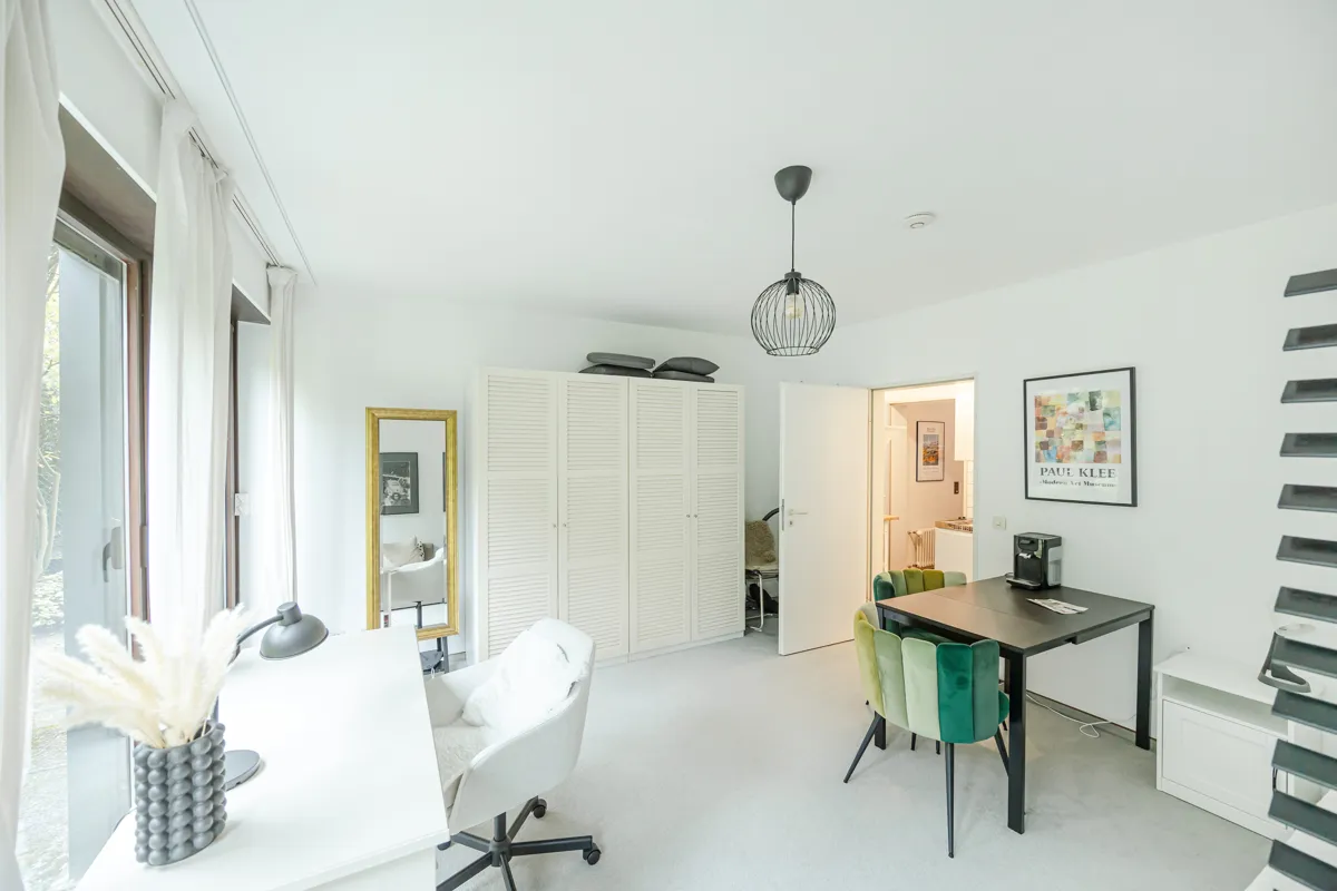 Die zwei zusätzlichen Appartements mit Gartenblick bieten Flexibilität für Gäste, erwachsene Kinder oder Pflegepersonal. Auch die Möglichkeit, im Erdgeschoss Arbeitsbereiche wie Praxen oder Büros zu integrieren, ist gegeben. Jeder Wohnbereich ist individuell zugänglich, was Privatsphäre und Unabhängigkeit gewährleistet.