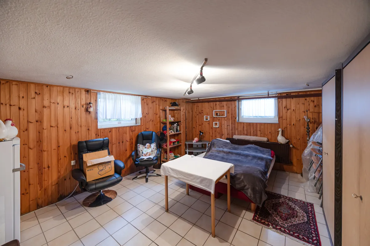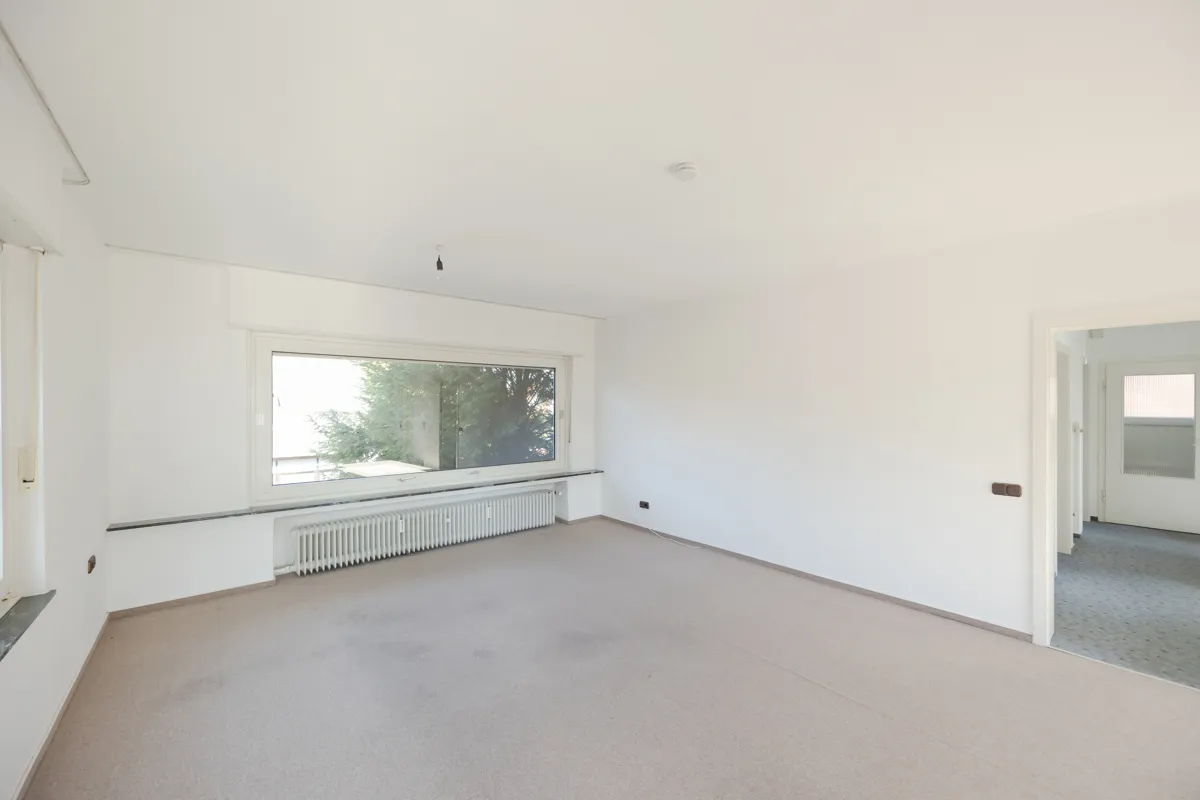 Sie haben die Wahl: Das bestehende Haus kann saniert und als großzügiges Einfamilienhaus oder komfortables Mehrgenerationenhaus genutzt werden. Das Dachgeschoss ist nicht ausgebaut. Die Grundrisse eignen sich hervorragend für beide Varianten, und das weitläufige Grundstück bietet ausreichend Platz für eine große Gartenfläche. Ebenso besteht die Möglichkeit, das vordere Haus zu modernisieren und das Grundstück zu teilen. Auf dem hinteren Teil könnte ein Neubau entstehen, der selbst genutzt, vermietet oder verkauft werden kann. Nach den Vorgaben des Bebauungsplans ist hier sogar die Errichtung eines Doppelhauses denkbar. Wer noch größere Pläne verfolgt, kann den Bestand auch vollständig abreißen und das Grundstück gemäß den vielfältigen Festsetzungen des B-Plans neu entwickeln.