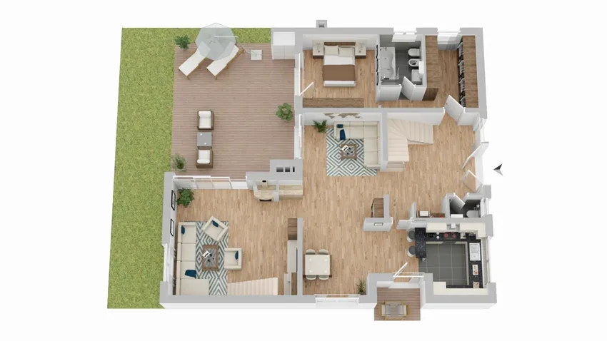 - Offener Küchen- und Essbereich mit eigener Morgenterrasse