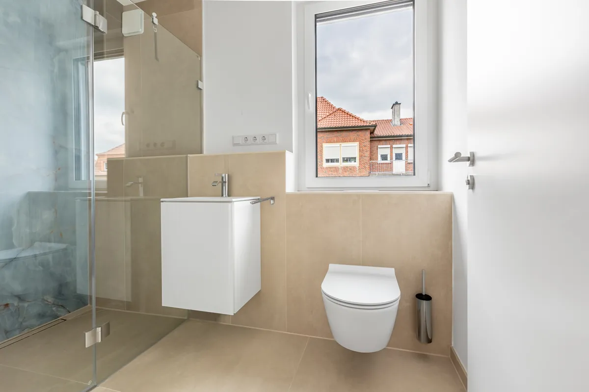 Angrenzend an das Entrée befindet sich der Masterbereich mit Schlafzimmer, einer eleganten Loggia, einer ca. 13 m² großen Ankleide mit über 10 laufenden Metern Schrankfläche sowie einem luxuriösen Badezimmer mit Wellnesscharakter. Ein Tageslicht-Gäste-WC mit Dusche sowie eine Garderobe komplettieren diese Ebene.