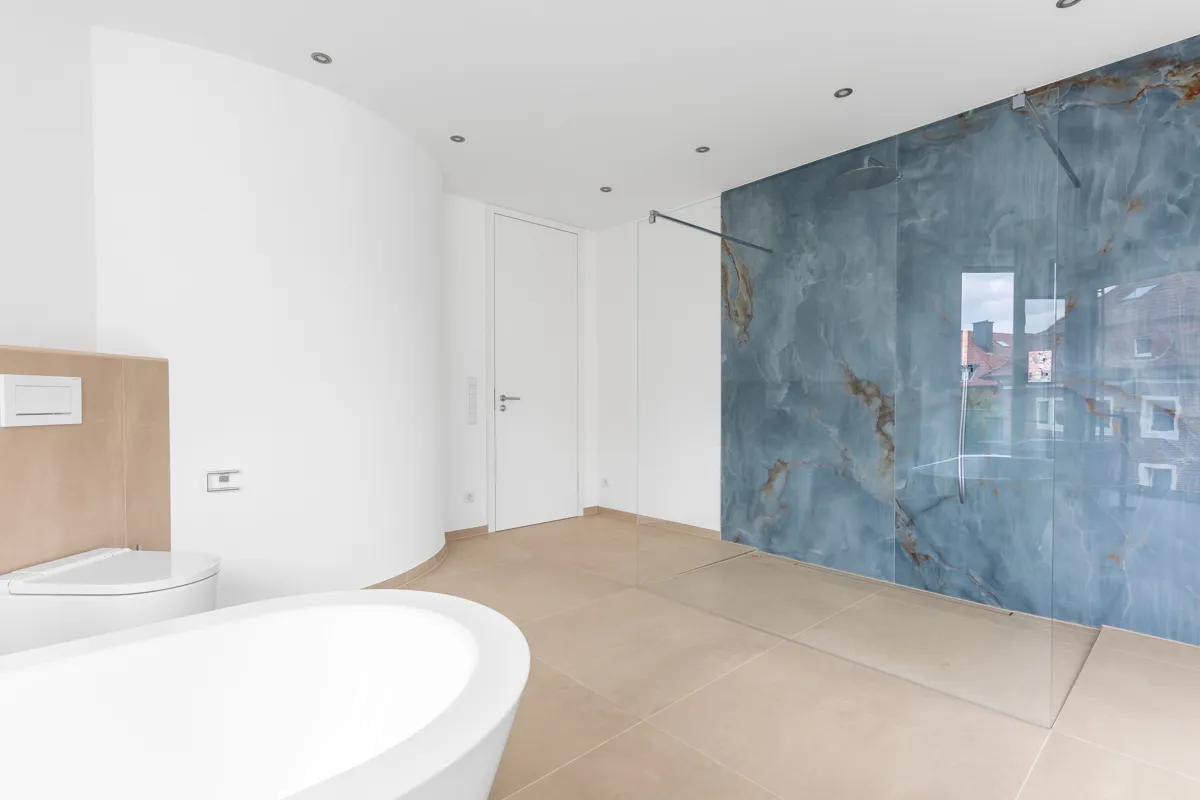 - Exklusiver Masterbereich mit Ankleide (ca. 13 m²) und Wellnessbad ensuite