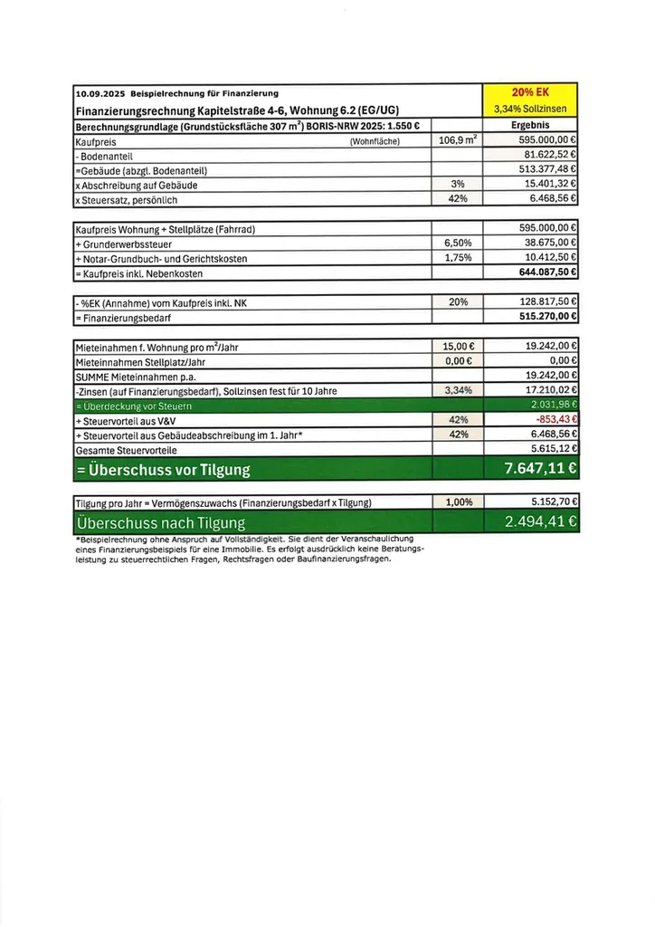Bei einer Vermietung erzielen Sie ca. 1.500€/p.m. Kaltmiete. Dies entspricht ca. 18.000€/p.a. und somit einer Rendite von 3,0% !