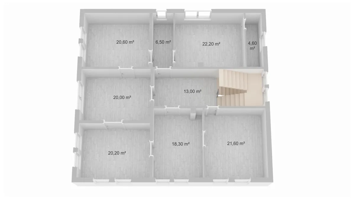 Die Wohnfläche von ca. 260 m² verteilt sich auf zwei vollwertige Etagen mit jeweils rund 130 m² im Erd- und Obergeschoss. Ergänzt wird das Raumangebot durch ein Dachgeschoss mit zusätzlichem Ausbaupotenzial sowie einen voll unterkellerten Bereich, der weitere Nutzfläche bietet. Die großzügige Raumstruktur, hohe Decken und die architektonischen Details aus der Bauzeit verleihen dem Haus eine besondere Atmosphäre und unterstreichen den repräsentativen Charakter der Immobilie.