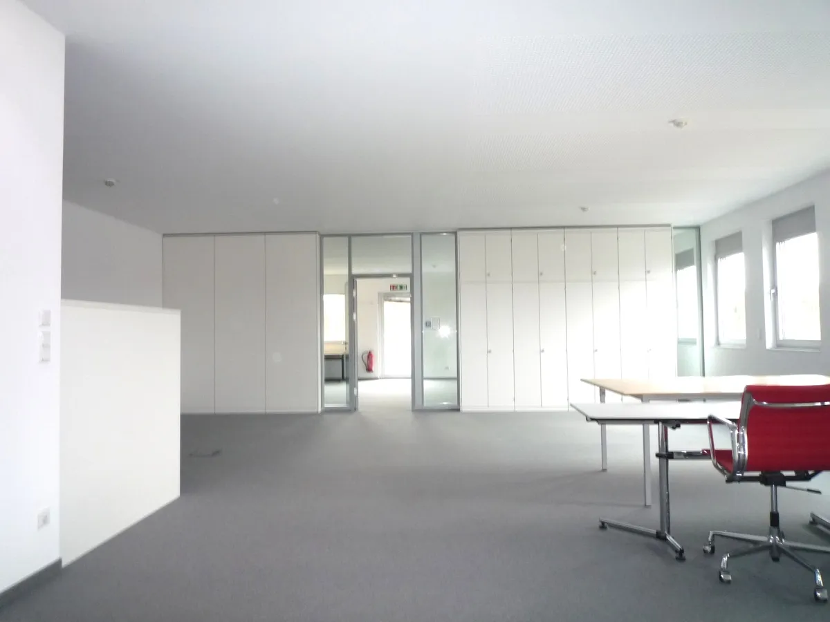 Die Bürofläche ist mit praktischen Einbauschränken und Regalen ausgestattet, die ausreichend Stauraum bieten und für Ordnung sorgen. Mit einem zuverlässigen Glasfaseranschluss ist das Büro bestens für digitale Anforderungen gewappnet. Bodentanks gewährleisten eine flexible Anordnung Ihrer Arbeitsplätze.