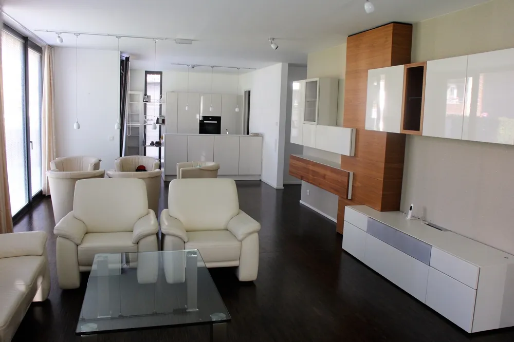 Die Wohnung überzeugt durch ihre großzügige Raumaufteilung, hochwertige Ausstattung und eine durchdachte Architektur, die ein offenes, lichtdurchflutetes Wohnambiente schafft. Bodentiefe Fenster in Sondermaßen sorgen in allen Räumen für viel Tageslicht und unterstreichen den exklusiven Charakter der Immobilie.