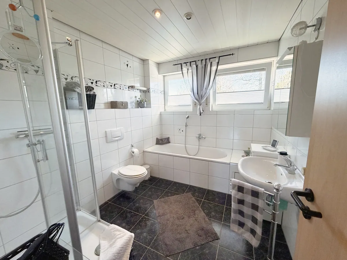 Obergeschoss: 3 Schlafzimmer, Familienbad mit Dusche, Badewanne + WC