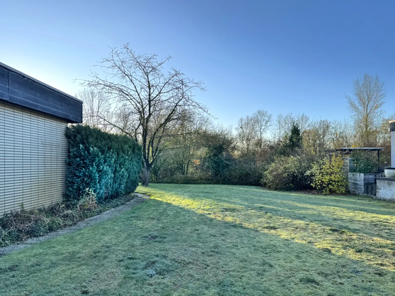 Die sonnige Südterrasse ist vom Wohn-, Ess- und Schlafzimmer aus begehbar und lädt zum Entspannen ein. Im weitläufigen Garten befindet sich zudem ein praktisches Gartenhaus. Eine Garage links vom Haus bietet einen sicheren Stellplatz.