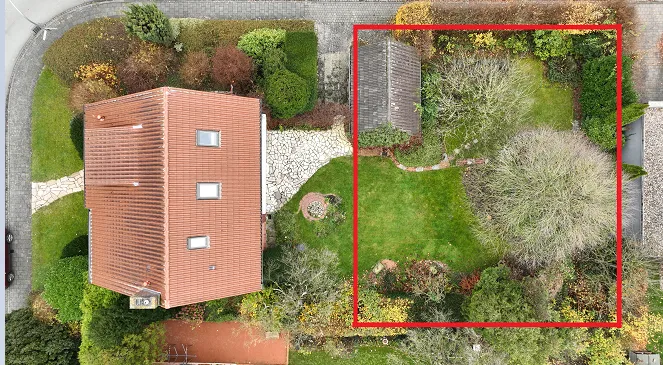 - im hinteren Teil des Gartens kann noch ein Einfamilienhaus gebaut werden