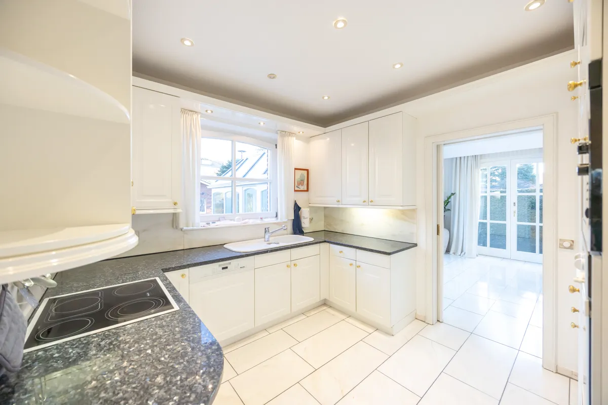 Eine separate Küche mit hochwertiger Einbauküche ergänzt das Erdgeschoss ebenso wie ein durchdachtes Raumkonzept. Ein Schlafzimmer mit Bad en Suite eignet sich perfekt als Elternbereich oder komfortabler Gästetrakt.