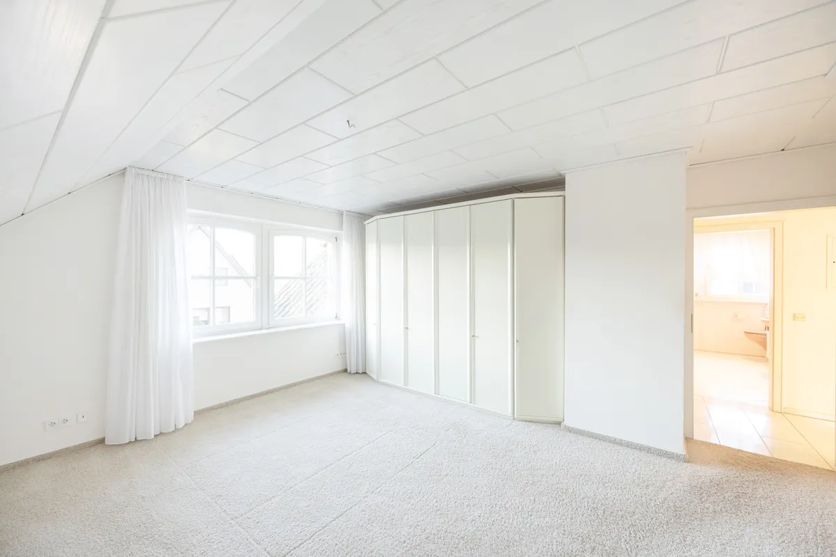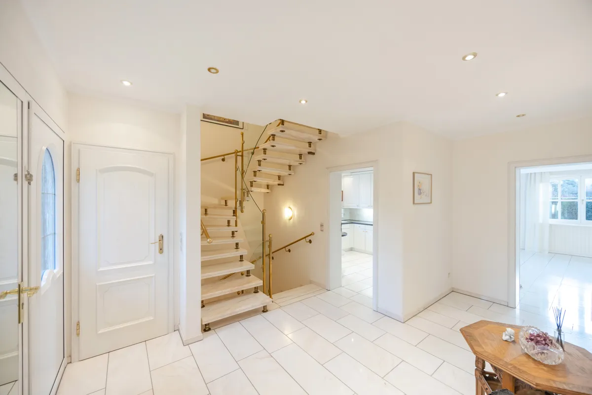 Im Obergeschoss befinden sich vier weitere helle Zimmer zur flexiblen Nutzung, ergänzt durch ein Zimmer mit Loggia als privater Rückzugsort. Zwei Bäder sowie zwei Gäste-WCs sorgen für alltagstauglichen Komfort.