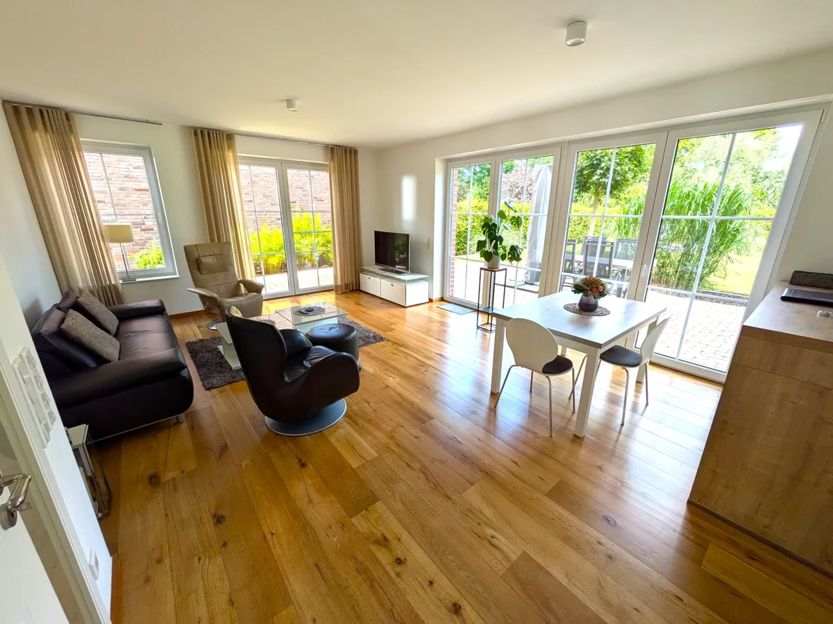 Das Herzstück des Hauses ist das helle und einladende Wohnzimmer, das durch große Fensterfronten viel Tageslicht einlässt und somit für ein angenehmes Wohnklima sorgt. Von hier aus gelangen Sie direkt auf die attraktive Terrasse, die zum Entspannen und Verweilen im Freien einlädt. Die großzügige Grundstücksgröße von ca. 650 m² bietet ausreichend Raum für Freizeitaktivitäten und gestalterische Möglichkeiten.