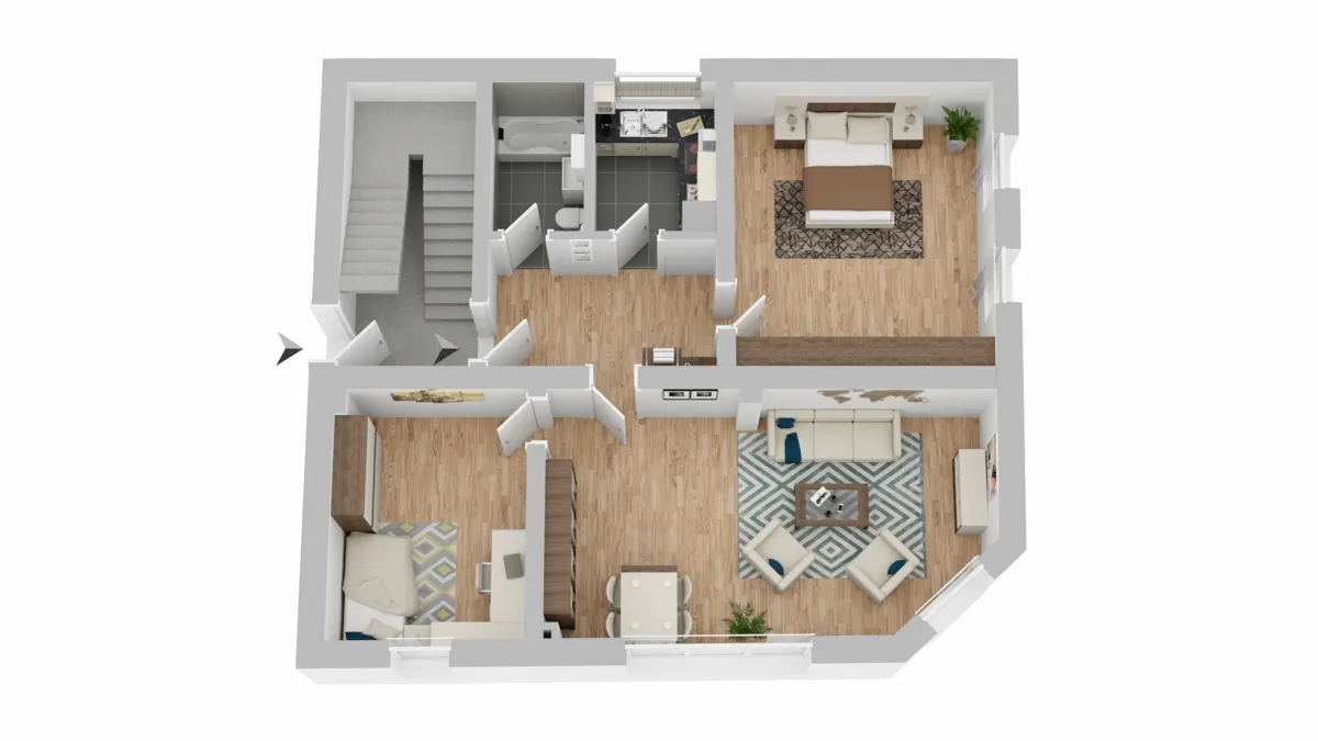 EG: 83,5m² mit 3 Zimmer, Küche, Bad