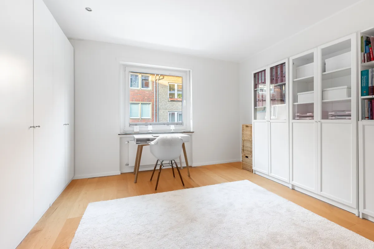 Die moderne Einbauküche überzeugt mit einer klaren Linienführung und hochwertigen Markengeräten. Das elegante Tageslichtbad ist mit einer bodentiefen Dusche ausgestattet und bietet Komfort auf hohem Niveau. Ein weiteres Zimmer eignet sich ideal als Arbeits-, Gäste- oder Kinderzimmer, während ein praktischer Hauswirtschaftsraum zusätzlichen Stauraum innerhalb der Wohnung schafft. Edler Boden aus kanadischem Ahorn verleiht den Räumen eine warme und zugleich exklusive Anmutung.