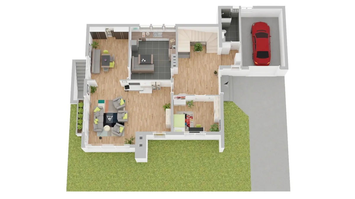 Die Visualisierungen der Grundrisse des Wohnhauses können abweichen.