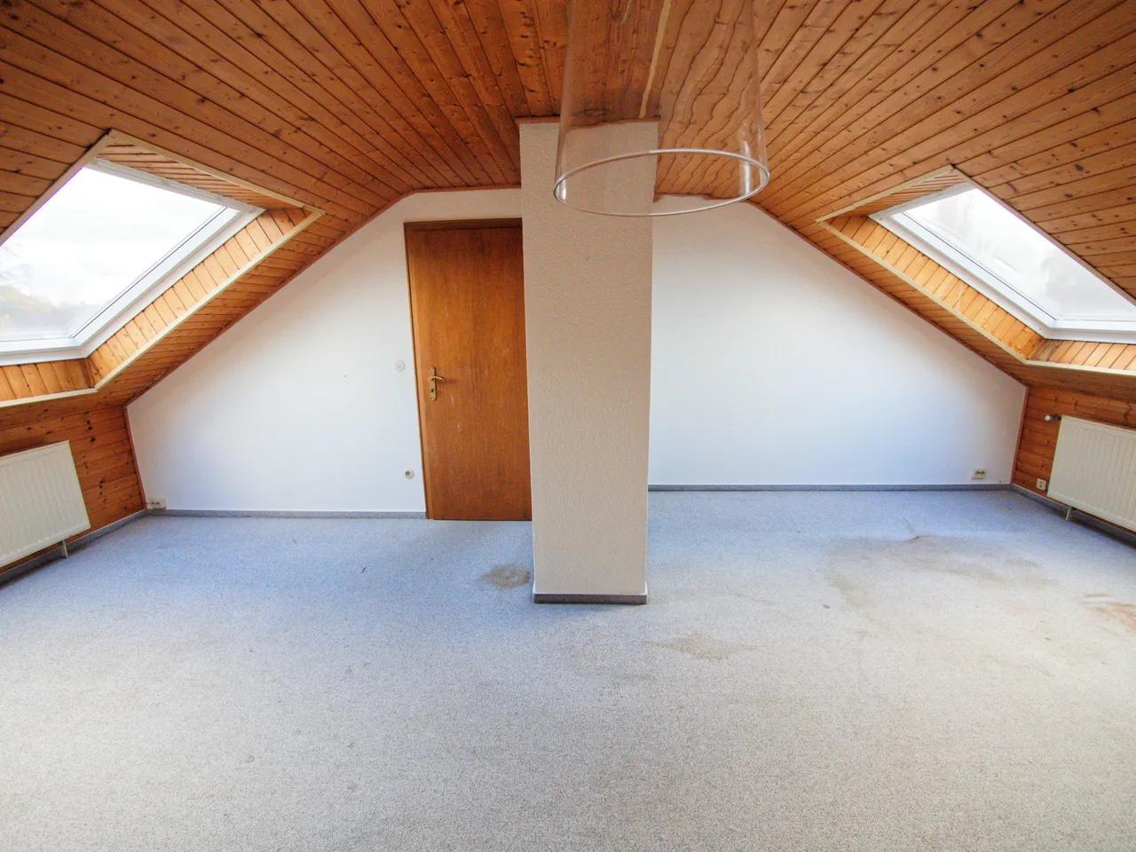 Eine Etage darüber, auf dem sogenannten Spitzboden, erwartet Sie ein weiteres Highlight: ein komplett ausgebautes Dachgeschoss auf einer Fläche von über 44 m² mit zwei großen Räumen. Hinzu kommen ein Gäste-WC, ein Abstellraum und ein kleiner Flur. Ein perfektes Refugium für Eltern oderTeenager oder eine großzügige Einheit für Homeoffice-Nutzer mit viel Licht und Blick über die Dächer von Mecklenbeck... alles ist möglich!