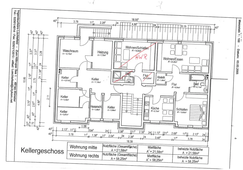 I. OG: li 61,41m²/550,36€, re 61,41m²/538,73€, mi 22,07m²/275,00€