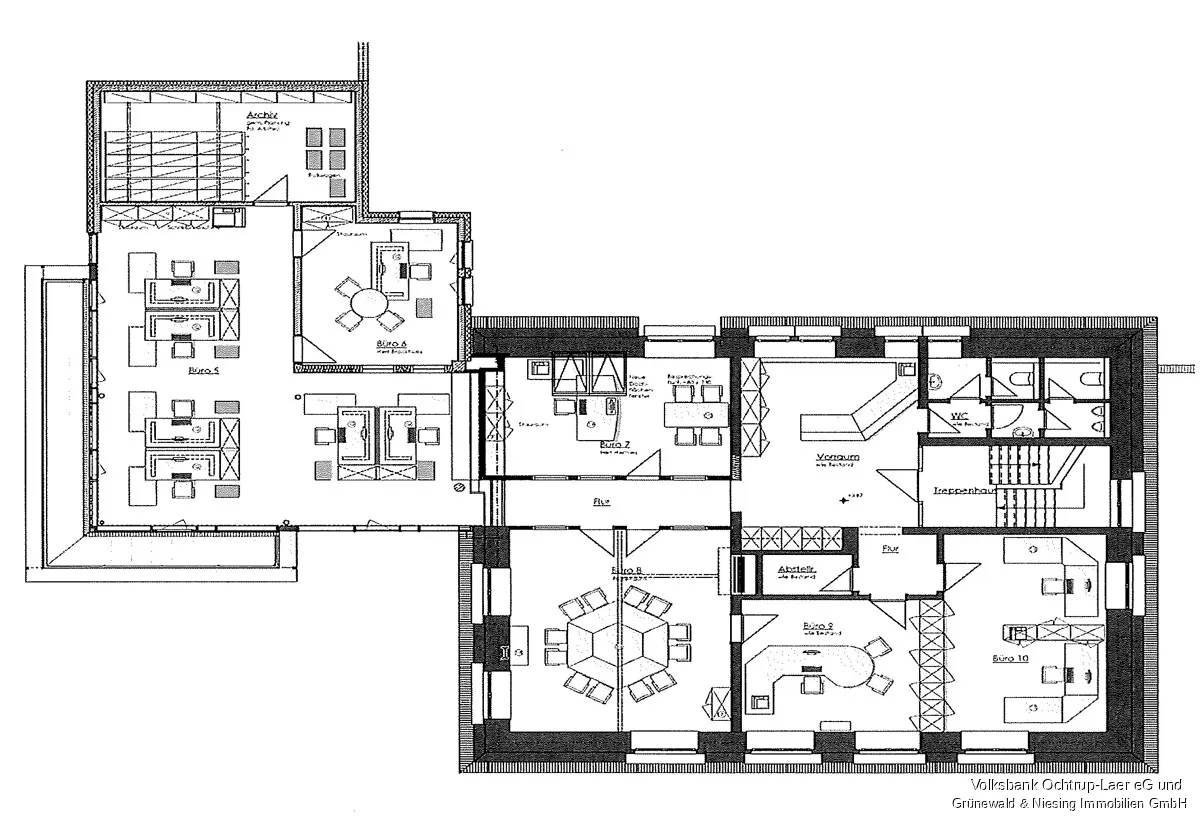 - Flexible Raumaufteilung: Einzel- und Großraumbüros