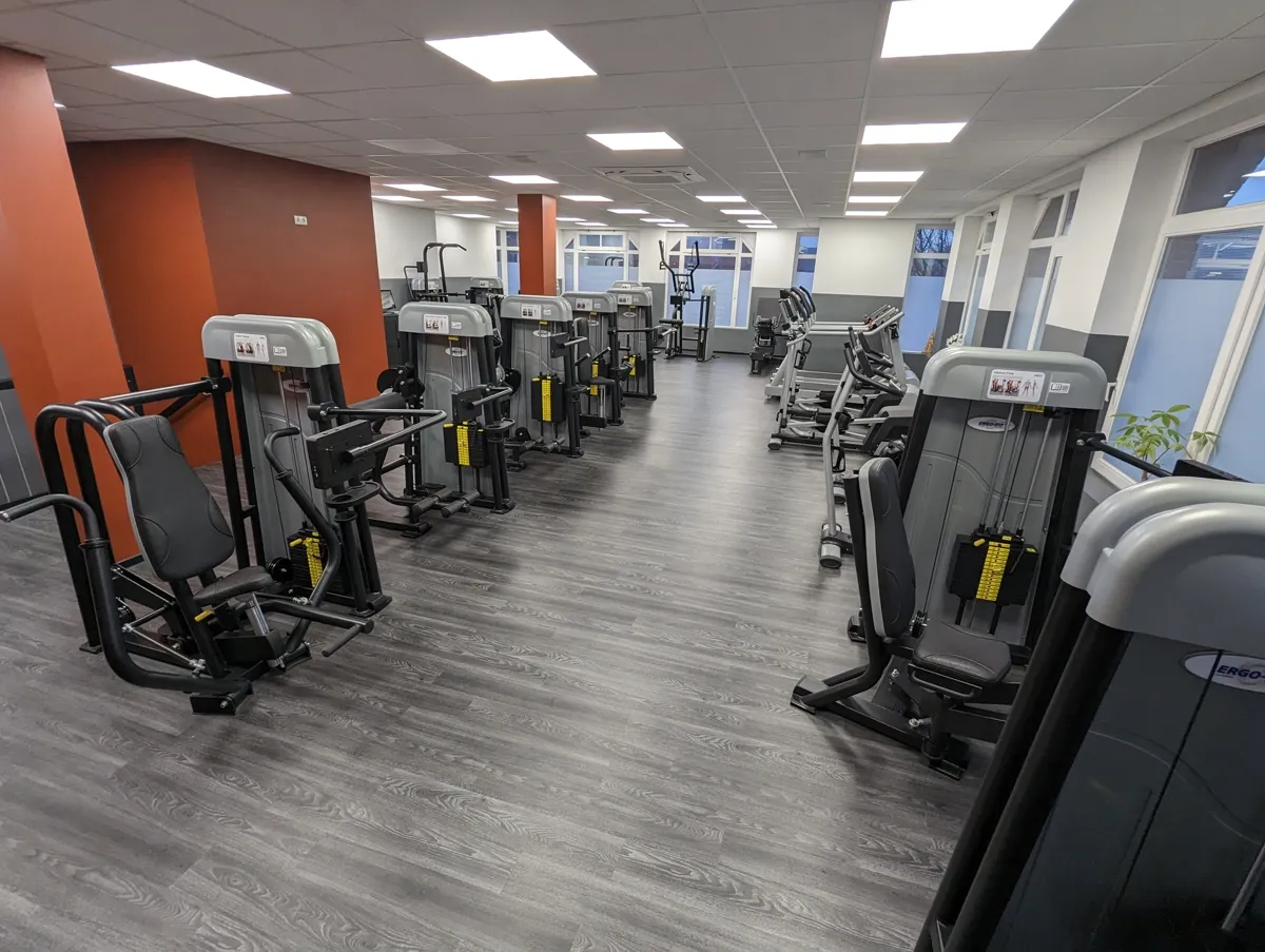 Auf gut 177 m² erstreckt sich im Erdgeschoss und dem Kellergeschoss ein modernes Fitnessstudio.
