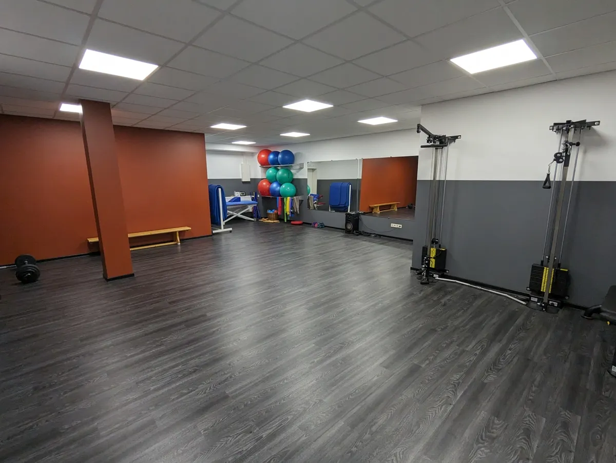 Der untere Bereich hat eine großzügige Freifläche und ist ideal für Rehasport oder Gruppengymnastik geeignet.