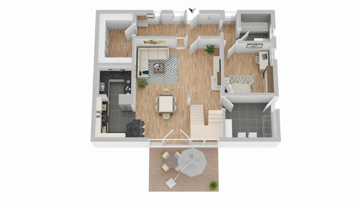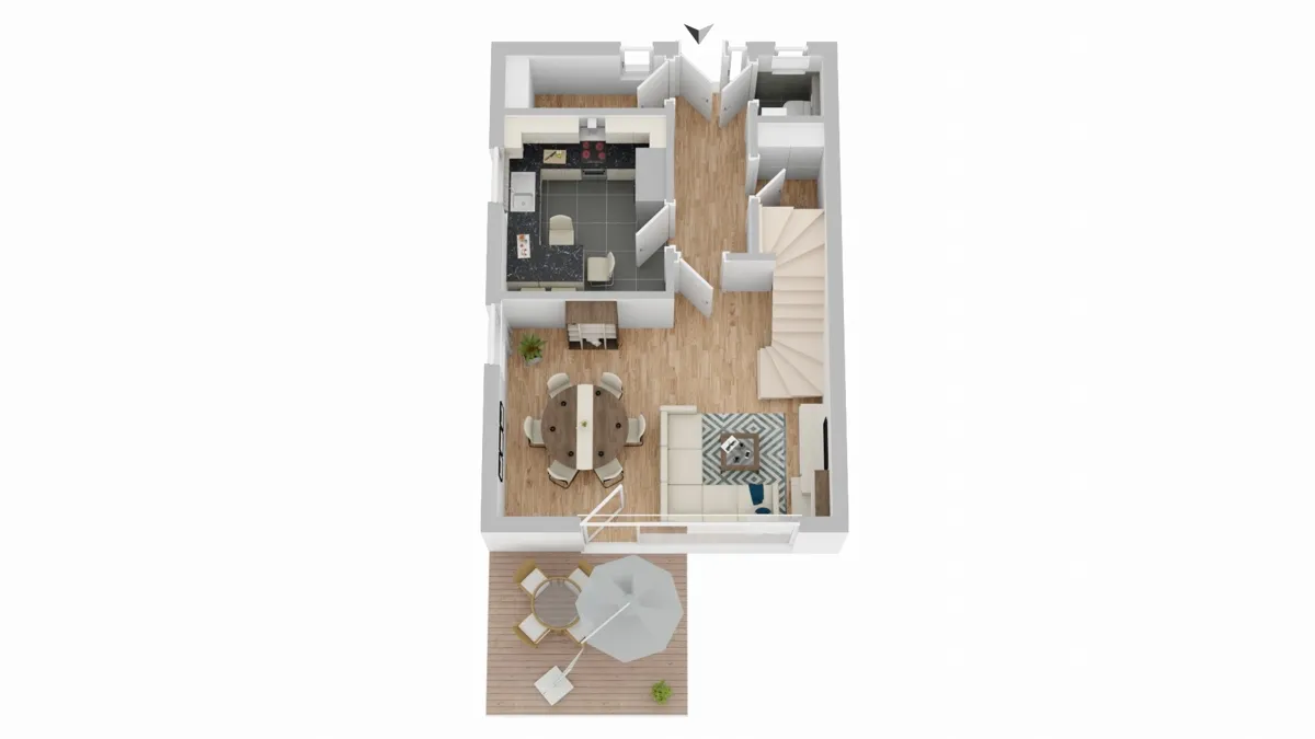 Die großzügige Terrasse lädt zu entspannten Stunden im Freien ein und bietet einen idealen Ort für gesellige Zusammenkünfte mit Freunden und Familie. Ergänzende 23 m² Nutzfläche bieten zusätzlichen Stauraum und Flexibilität für Ihre individuellen Bedürfnisse.