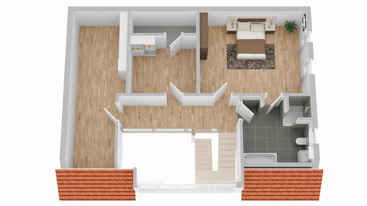 + Echtes Bambusparkett im Bereich der Galerie und des Elternschlafzimmers, Linoleum im Arbeitszimmer und im Esszimmer