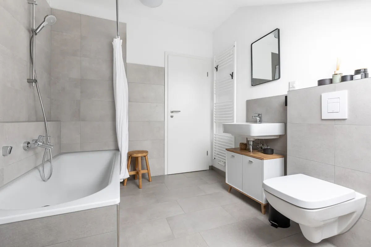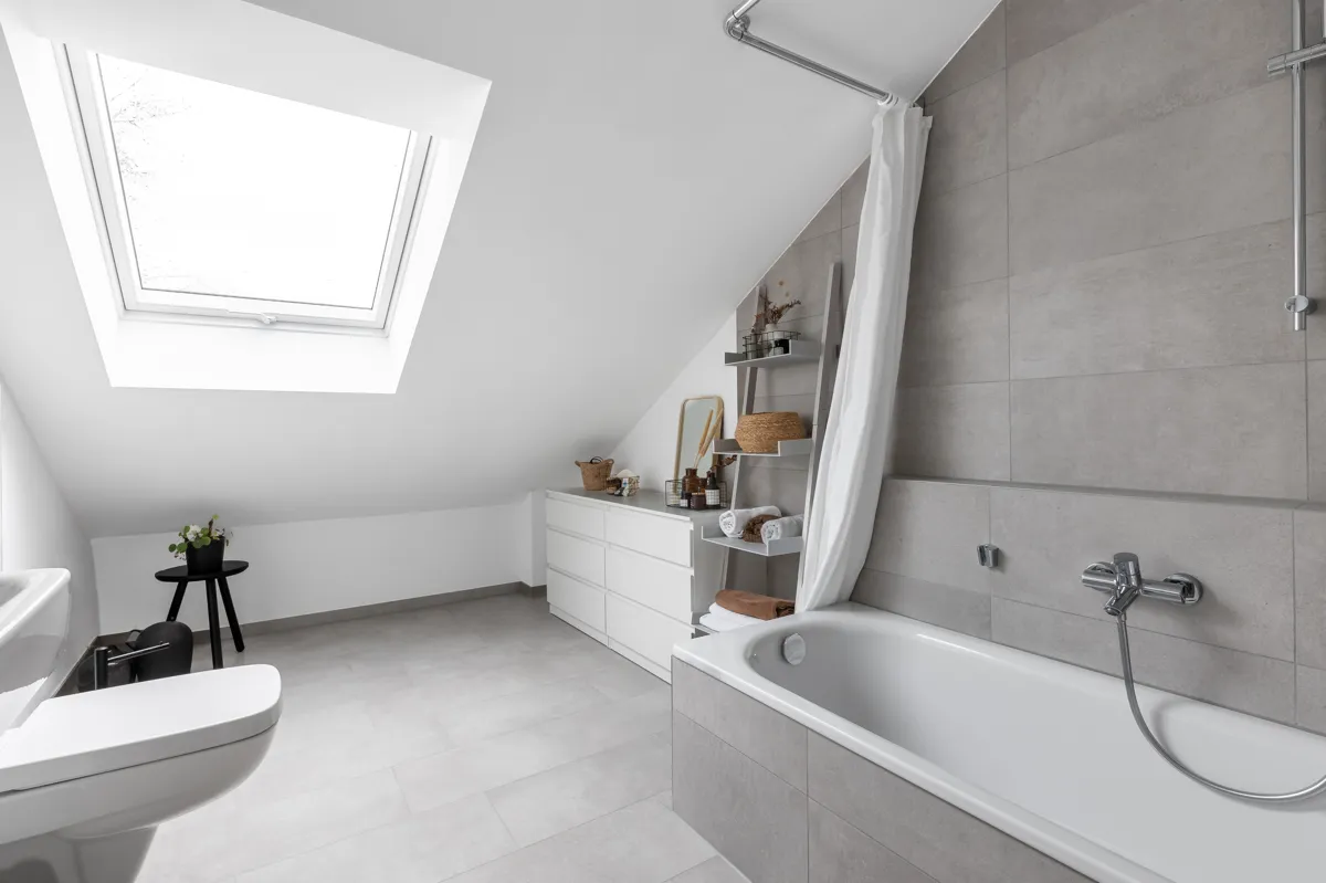 - Bad im Dachgeschoss mit Badewanne und Duschvorrichtung