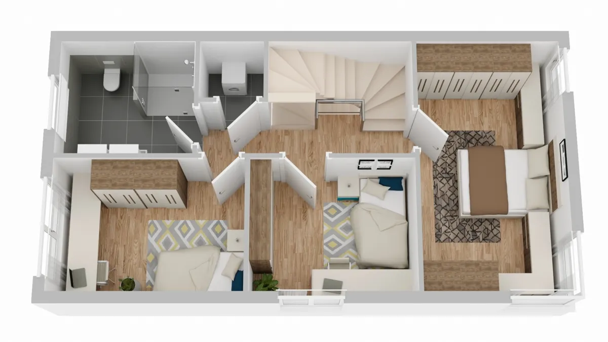 - Familienbad im Obergeschoss mit bodengleicher Dusche