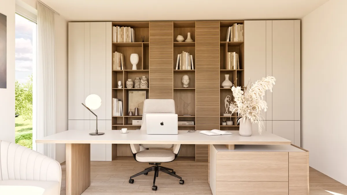 Ein weiteres Highlight auf dieser Ebene ist die ca. 21 m² große Bibliothek, die auch als Arbeitszimmer genutzt werden kann. Mit ihren bodentiefen Studiofenstern eröffnet sich ein wunderschöner Ausblick auf den Aasee, der das Arbeiten oder Lesen zu einem besonderen Erlebnis macht. Zudem bietet diese Ebene ein repräsentatives Entree, das großzügigen Platz für Garderobe und Schränke bietet, sowie ein Gästezimmer, ein Gäste-WC mit Dusche und Tageslicht – perfekt für den Empfang von Besuch.