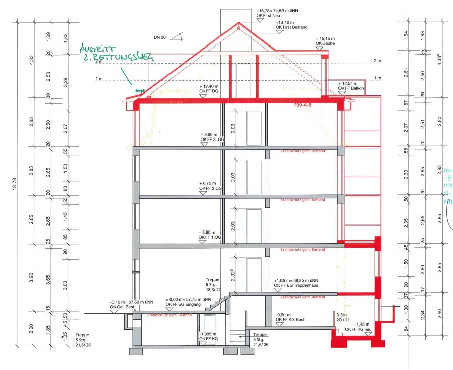 Besonders hervorzuheben ist das Dachgeschoss, das mit einer Ausbaureserve von ca. 100 m² hervorragende Erweiterungsmöglichkeiten für zusätzlichen Wohnraum bietet. Darüber hinaus lassen sich auch noch Balkone anbauen, um den Wert der Wohnungen zu steigern.