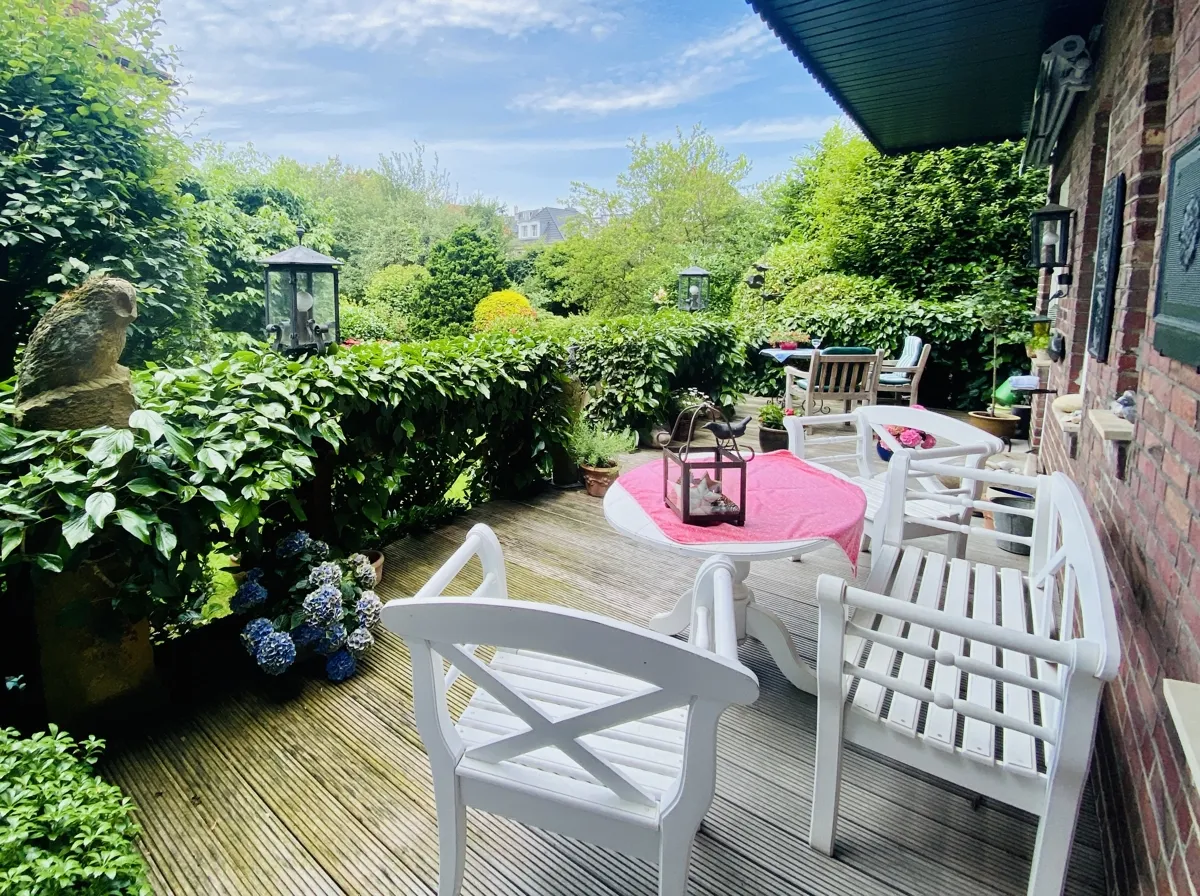 Das ca. 618 m² große Grundstück wurde liebevoll angelegt und bietet Platz für gepflegte Außenanlagen. Die ansprechende Fassade, der gepflegte Garten und der harmonische Gesamteindruck unterstreichen den wertbeständigen Charakter dieser Immobilie.