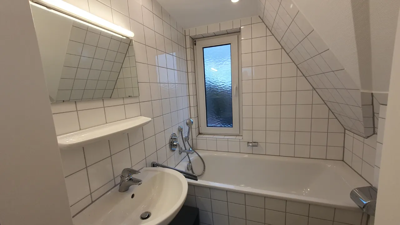 Die Wohnung befindet sich in einem sehr gepflegten, in Massivbauweise erstellten Mehrfamilienhaus im Dachgeschoss über 2 mit insgesamt acht Wohneinheiten. Das Haus verfügt mit einer Abstellmöglichkeit für Fahrräder, sowie einem Waschkeller mit Waschmaschine und Trockner (Wertmarkenautomat) über gemeinschaftliche Kelleranlagen, als auch über sep. Kellerräume.