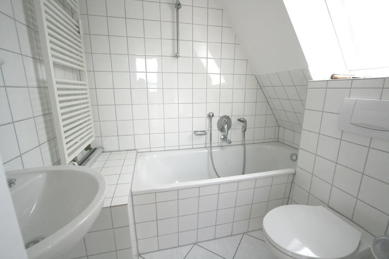 Die Wohnung befindet sich in einem sehr gepflegten Mehrfamilienhaus und erstreckt sich über das 3. und 4. Obergeschoss. Den Bewohnern stehen zudem praktische Gemeinschaftseinrichtungen zur Verfügung, darunter eine Abstellmöglichkeit für Fahrräder, ein Waschkeller mit Waschmaschine und Trockner (Wertmarkenautomat) und separate Kellerräume.