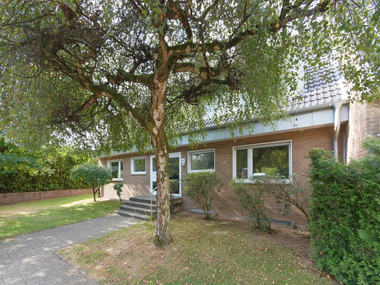 Die Wohnung selber erreichen Sie bequem im Erdgeschoss. Hier genießen Sie aus allen Fenstern und der gemütlichen Terrasse mit Westausrichtung einen schönen Blick ins Grüne und auf einen herrlichen Baumbestand.