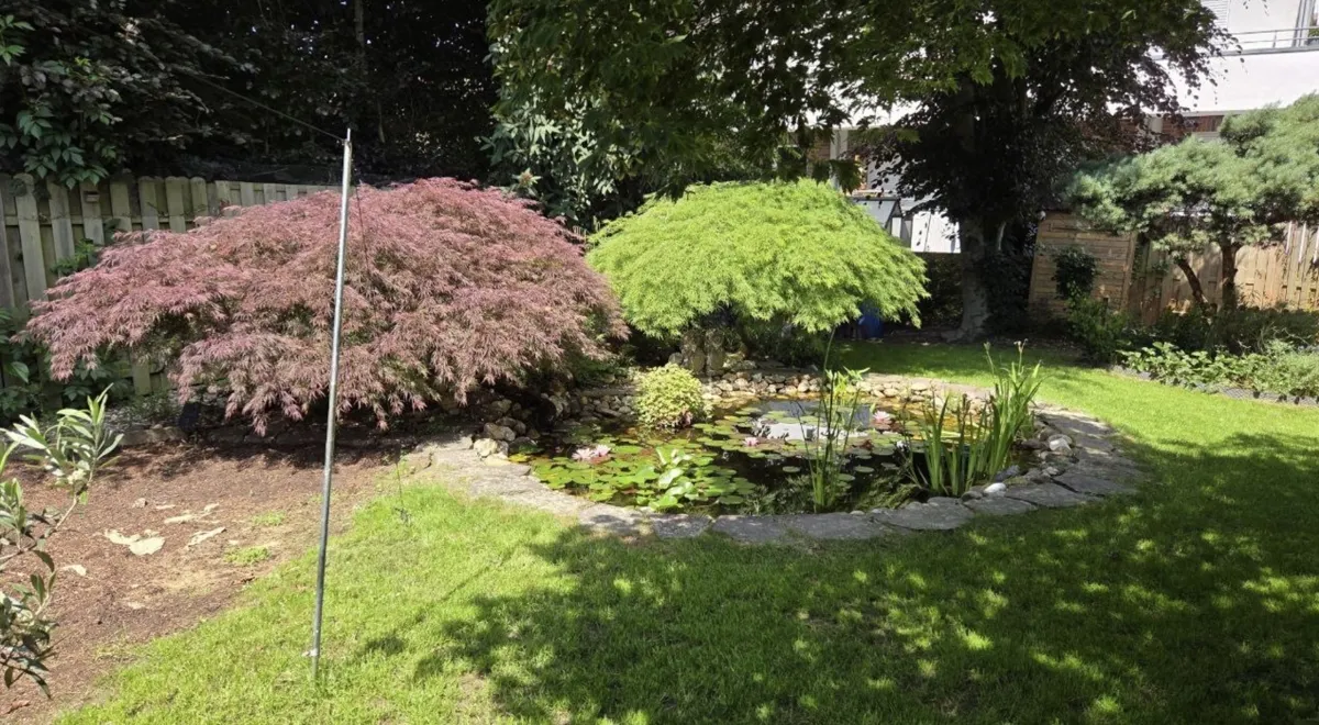 - Privater nicht einsehbarer Garten mit Teich und altem Baumbestand