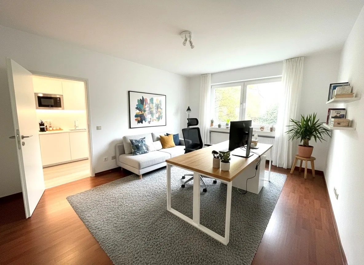 Die Lage selbst bietet trotz ihrer zentralen Position eine angenehm ruhige Atmosphäre. Sie wohnen und arbeiten hier in einer Seitenstraße, die das urbane Leben vor der Haustür spürbar macht, ohne auf Rückzugsmöglichkeiten verzichten zu müssen, da die Promenade und der Aasee sich in unmittelbarer Nähe befinden.