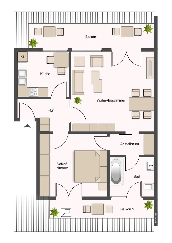 - Zugang auf einen Balkon von jedem Zimmer aus