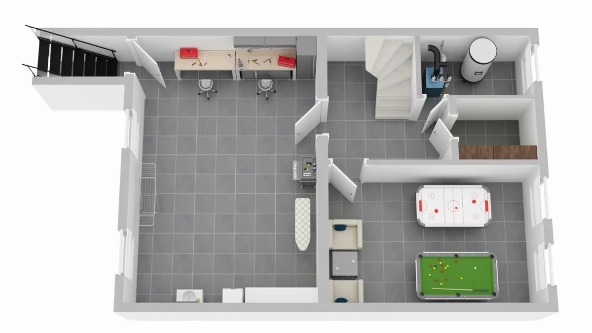 - beheizbarer großer Kellerraum, nutzbar als Party - oder Spielkeller