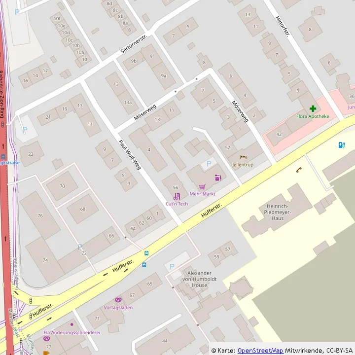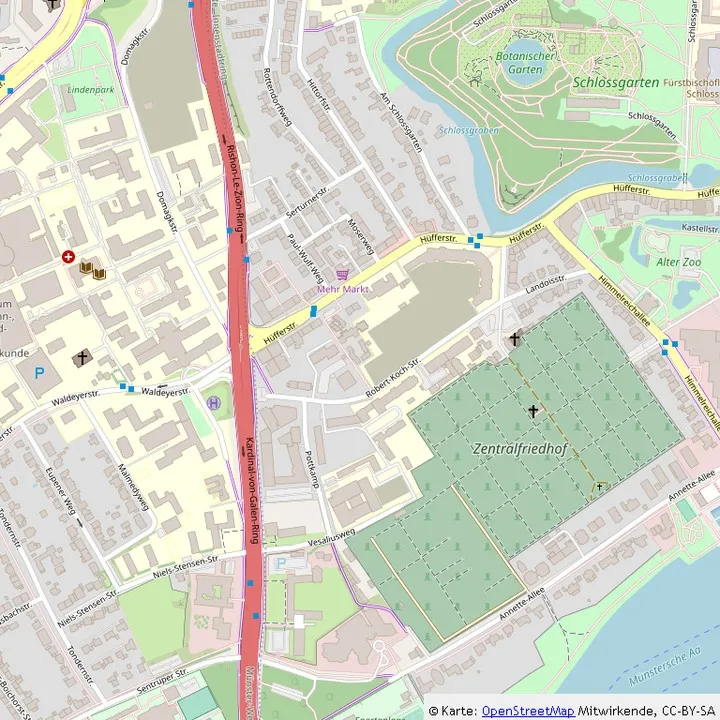 - Das nächste Krankenhaus, das UKM, ist 700 m entfernt