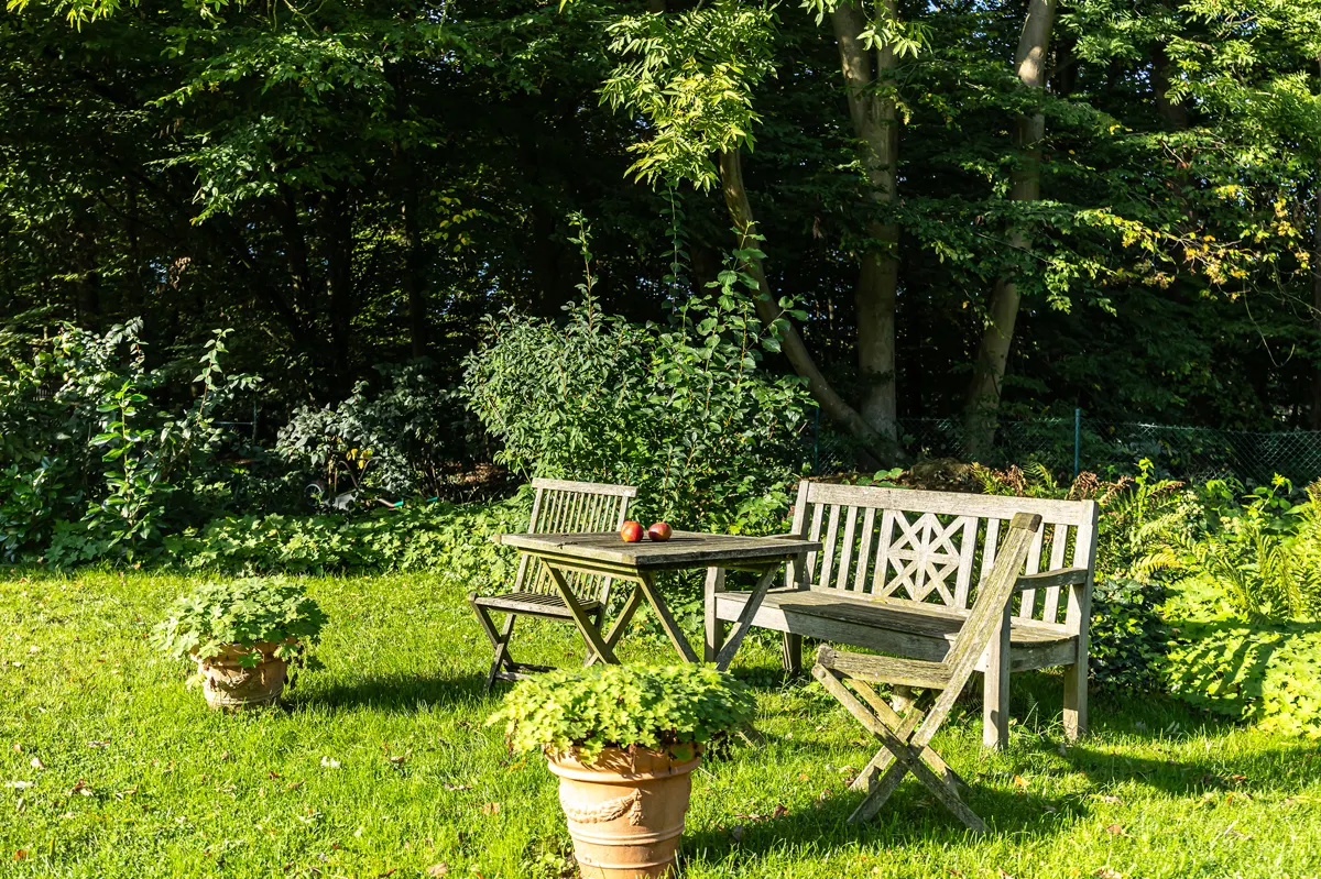 Die unverbaubare, blickdichte und ruhige Gartenanlage bietet neben einem herrlichen Blick ins Grüne auch die Option für den Bau einer Außenpool-Anlage – ein echtes Highlight in städtischer Lage. Hier lässt sich das Leben im Freien in vollen Zügen genießen.