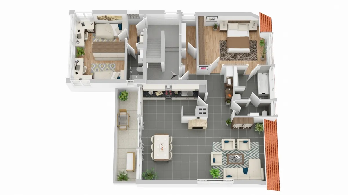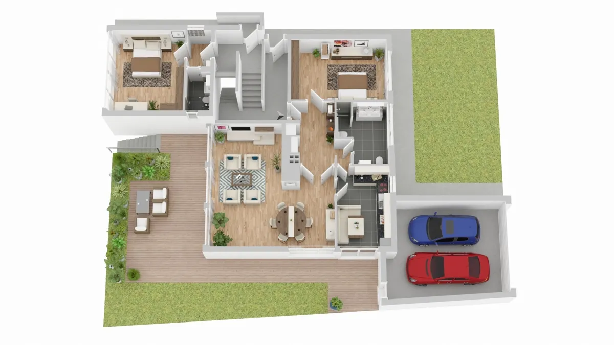 Die zwei zusätzlichen Appartements mit Gartenblick bieten Flexibilität für Gäste, erwachsene Kinder oder Pflegepersonal. Auch die Möglichkeit, im Erdgeschoss Arbeitsbereiche wie Praxen oder Büros zu integrieren, ist gegeben. Jeder Wohnbereich ist individuell zugänglich, was Privatsphäre und Unabhängigkeit gewährleistet.