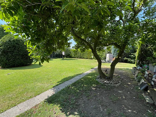 Großer gewachsener Garten mit altem Baumbestand, großer Rasenfläche, Nutzgarten, zwei Terrassen